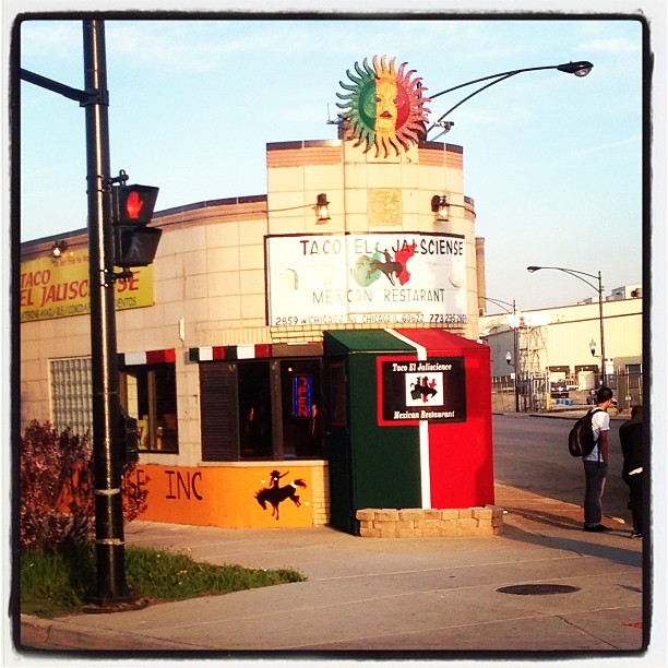 Taco El Jaliscience, or Taco El Jalscience, depending on which of their signs you believe to be correct, is a well-yelped taco joint on a lonely corner in Humboldt Park. Its al pastor taco was named the best in Chicago by CLTV and WGN. I’m not sure what year. The sign is very vague. So, I rounded up a bad-ass posse and headed down to the Puerto Rican/hipster neighborhood.