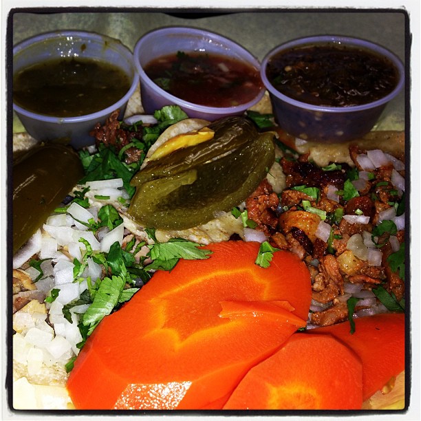 - Tacos sampled: carne asada, al pastor, chorizo, chicharron and pescado (also have pollo, molida, chorizo con huevos, vegetariano, tripa, cecina, lengua, lomo encebollado and chile relleno)