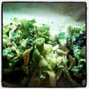 But, I also liked some of the little things they do here to make it unique. Their array of tacos is pretty impressive. I need to go back for the trinity of “foody” tacos: the tripe, the brain and the sweet breads tacos. They make their own salsas. One is a nice salsa roja, another is a hot sauce they make on site and the third is an avacado sauce that is magical. Apparently mimicking Mexico City street food, the tacos come with four whole grilled green onions and a supply of radishes. The owner also gave us each a complementary glass of tepache, which I had never heard of. It’s furmented pineapple water, and it’s pretty darned good.